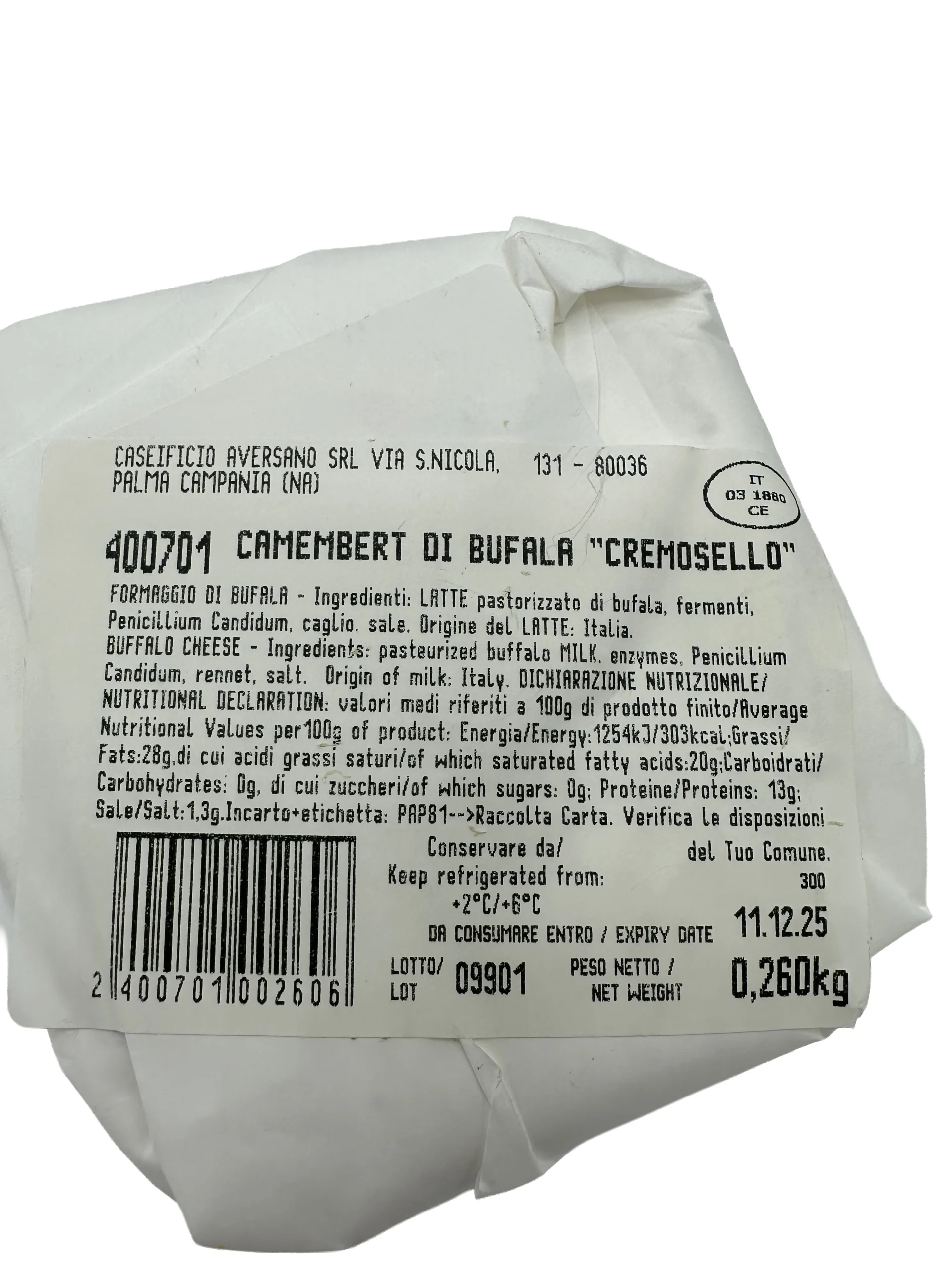 Camembert di bufala artisannale – 34,23 €/Kg
