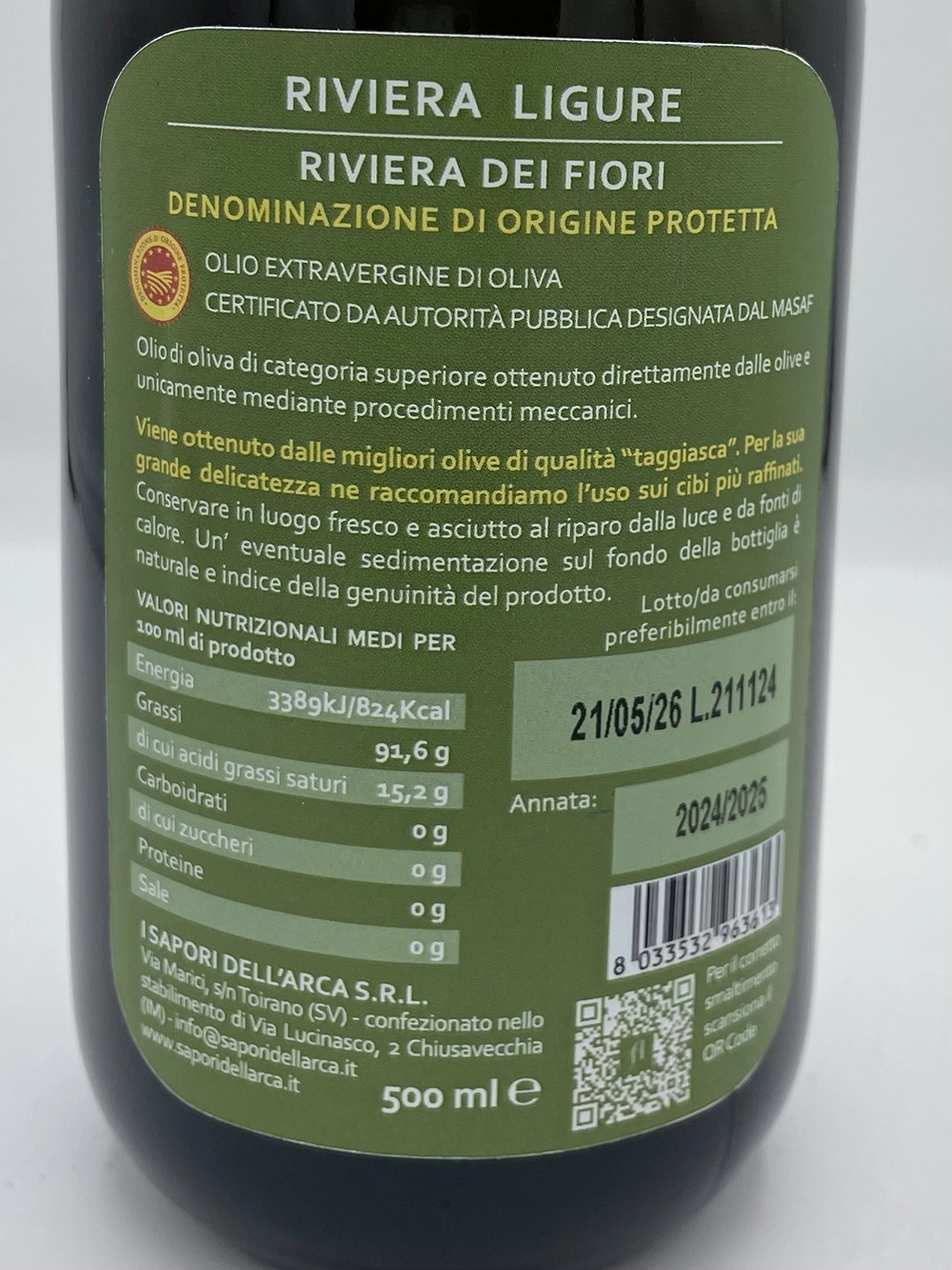 Huile d’olive 100% Taggiasca – 38, €/kg ou €/L
