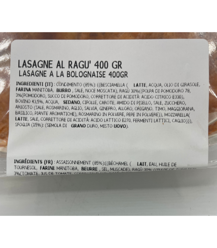 Les lasagnes bolognaise,un plat authentique, savoureux et reconfortant – 22,5 €/Kg