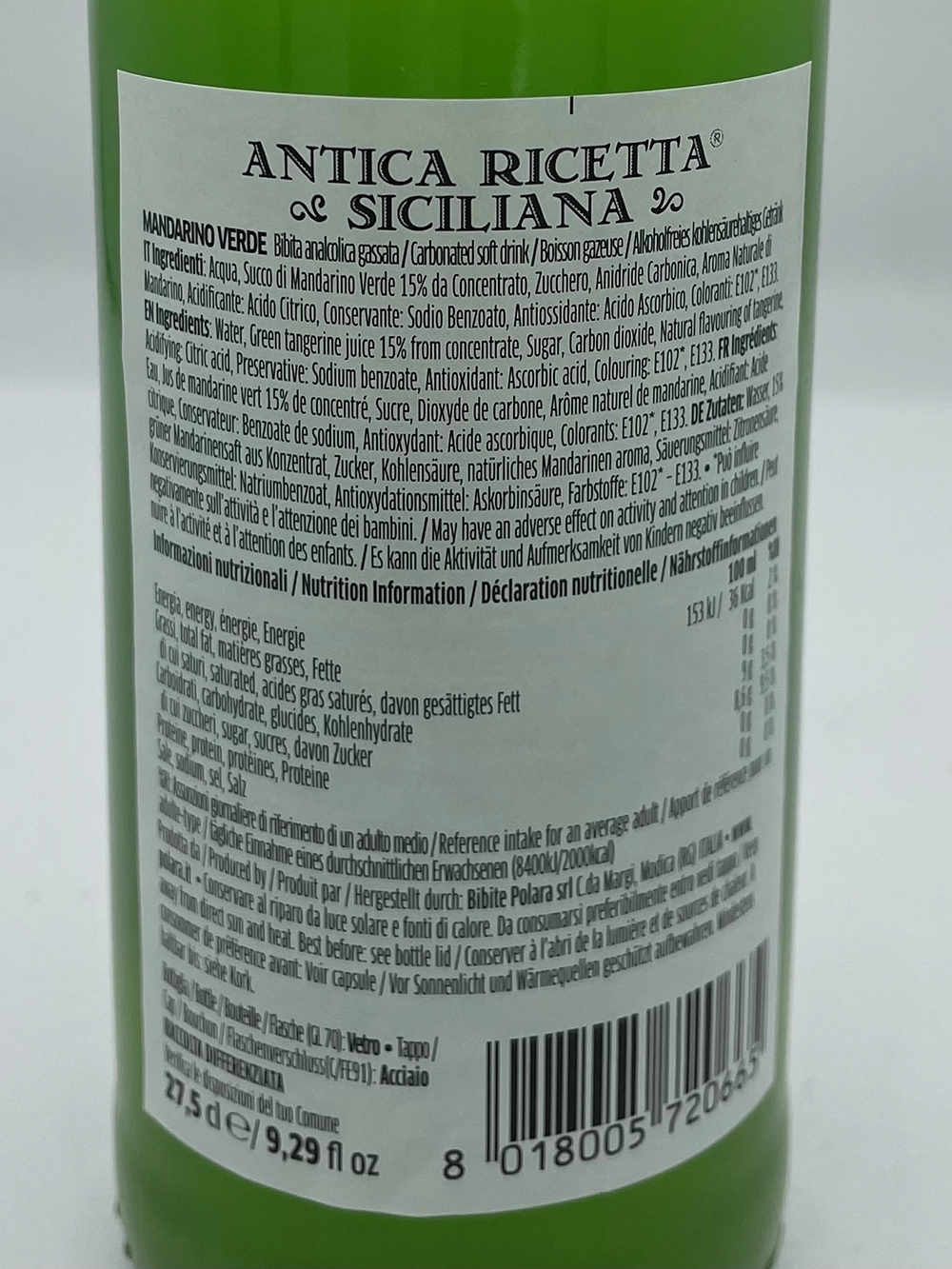 Limonade sicilienne Polara à la mandarine verte – 9,26 €/kg ou €/L