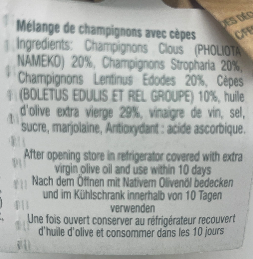 Mélanges de champignons et cépes à l’huile d’olive extra vierge – 42,14 €/kg ou €/L