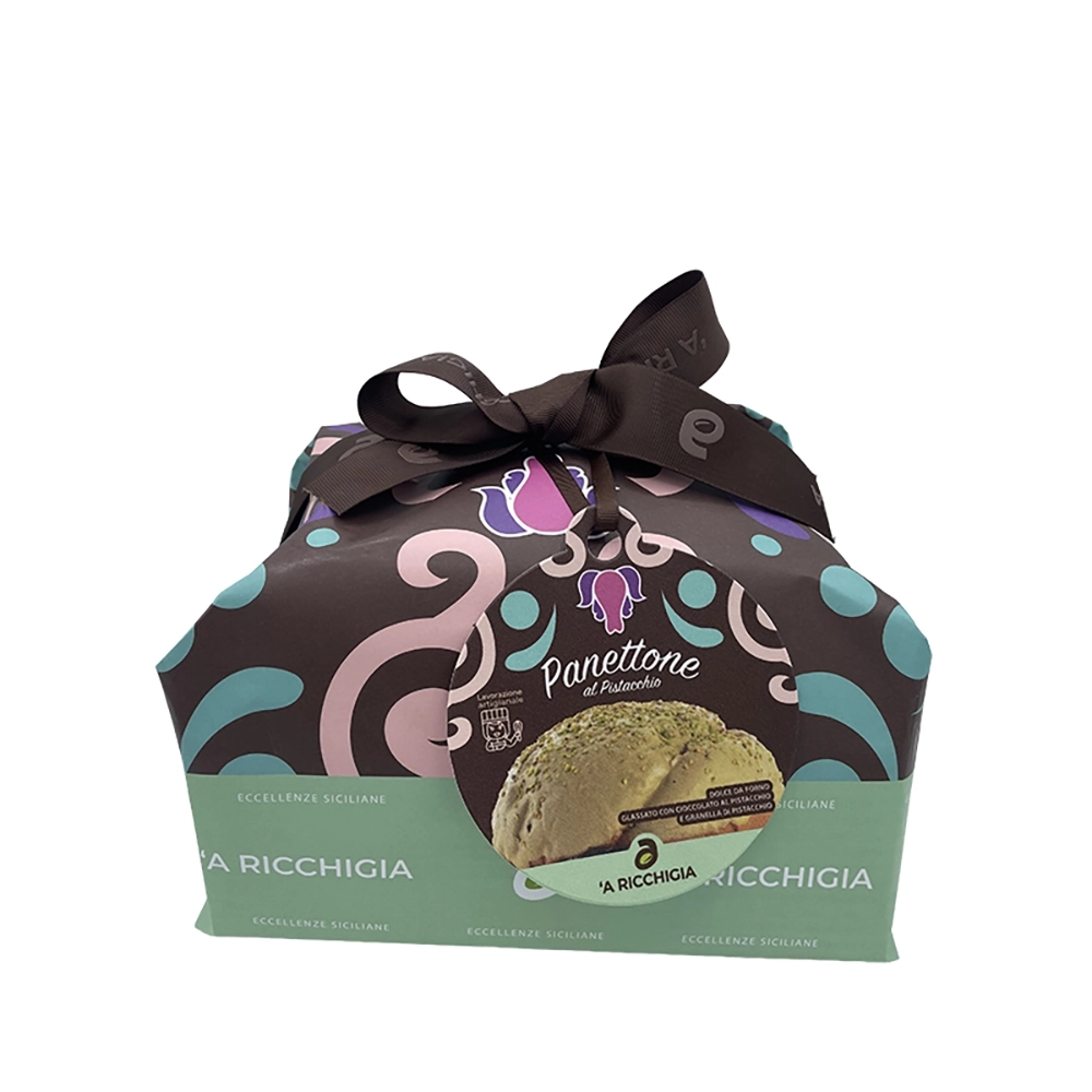 Découvrez une merveille de la pâtisserie sicilienne : notre panettone artisanal à la pistache et au chocolat blanc, symbole du savoir-faire gourmand de l’île.Préparé à la main, il marie la douceur du chocolat blanc à la richesse intense de la pistache de Sicile, pour une explosion de saveurs raffinées.La pâte, levée naturellement au levain est aérienne, moelleuse et parfumée, offrant une texture filante incomparable. La surface est généreusement nappée de glaçage au chocolat blanc et à la pistache et éclats croquants.Un dessert d’exception, parfait pour les fêtes ou pour offrir une touche de luxe gourmand à vos moments sucrés.Fabrication artisanale en Sicile – Ingrédients naturels – Sans conservateurs – Plaisir fondant et irrésistible.